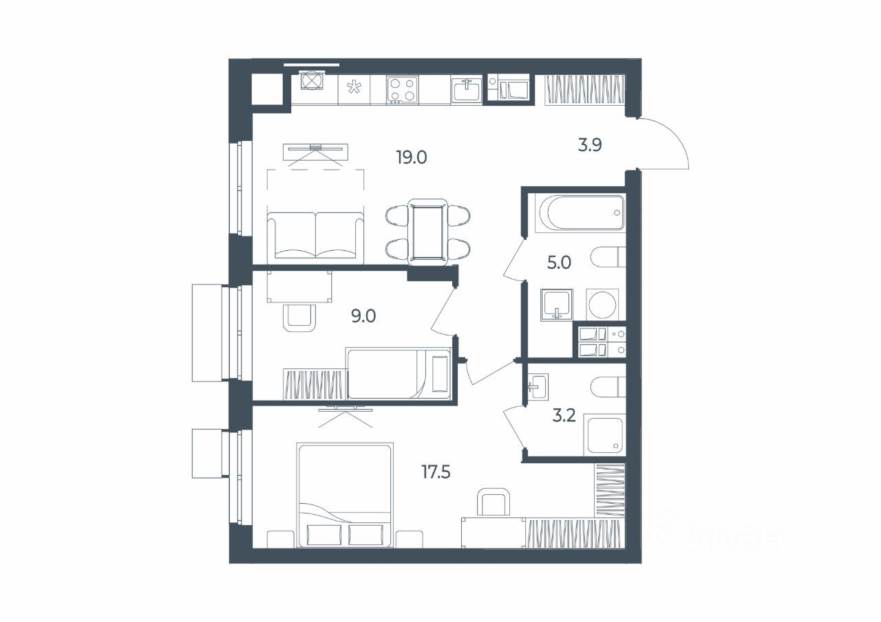 Общая площадь57,6 м²