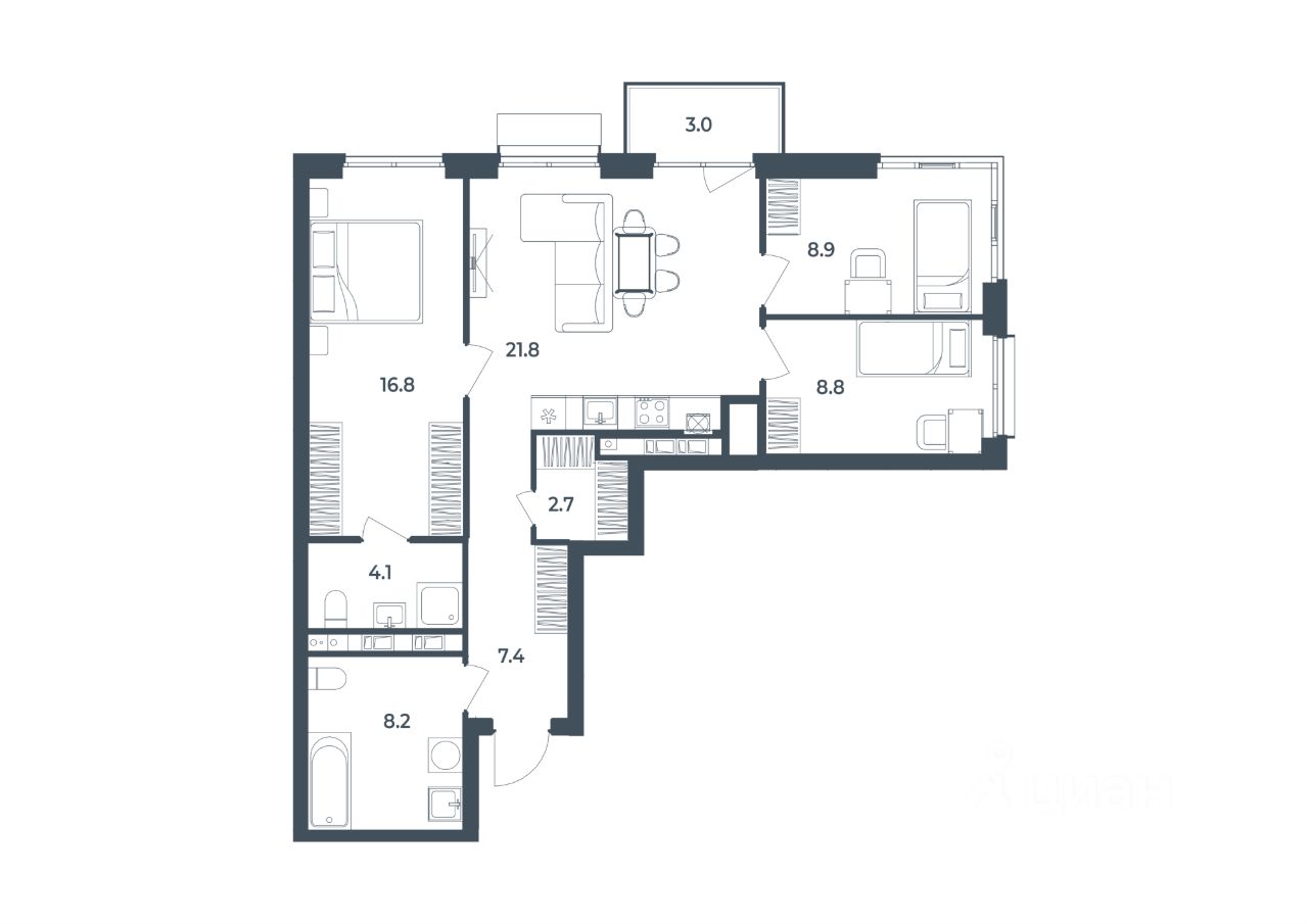 Продается 3-комн. квартира, 81,7 м²