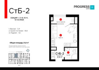 Общая площадь21,8 м²