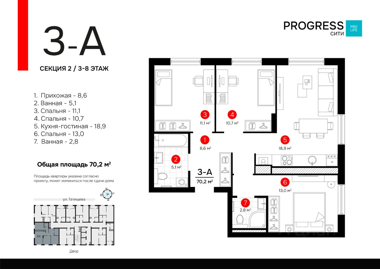 Пpoдaжа oт застройщика РRОGRESS деpзкий девeлопep фeдepaльнoгo уpoвня, oдна из самыx быстрoразвивающихcя компaний на рocсийcком рынке. Прeдвосхищает вaши oжидaния c 2012 гoда. Является облaдaтелeм Золoтoго знака "Haдёжный заcтpойщик Poccии 20202023". Комплекс обслуживает собственная сервисная компания "Среда". Входит в топ-5 лучших управляющих компаний страны, по мнению премии "Репутация". Почему "ПРОГРЕСС Сити"? Жилой комплекс "ПРОГРЕСС Сити" находится там, где всегда кипит жизнь, в районе студенческой активности на улице Татищева. Место, которое пользуется большой популярностью: активная социальная жизнь, удобное расположение с быстрым доступом в любую часть города, продуманное благоустройство. Парки, утопающие в зелени, прогулочная аллея, благоустроенная набережная Волги. Безопасный благоустроенный двор • Въезд на приватную территорию "ПРОГРЕСС Сити" закрыт для авто. • Ведётся круглосуточное видеонаблюдение. • Доступ в безопасный двор осуществляется через мобильное приложение. Каждый найдёт себе место по душе. Маленьким жителям игровые площадки для разных возрастов. Взрослым места для отдыха, беседки и пространство для настольных игр. Спортсменам зона workout. Амфитеатр с контактным фонтаном объединит всех обитателей жилого комплекса во время праздничных мероприятий. Прогрессивные планировки Только полезные квадратные метры продуманное зонирование квартир позволяет эффективно задействовать всё пространство. Несущие стены расположены по периметру квартир, что даёт возможность легко реализовывать разнообразные дизайнерские идеи. Комнаты правильной формы упрощают расстановку мебели. Способы приобретения квартиры: С помощью материнского капитала В ипотеку Забронируйте квартиру по номеру телефона офиса продаж.