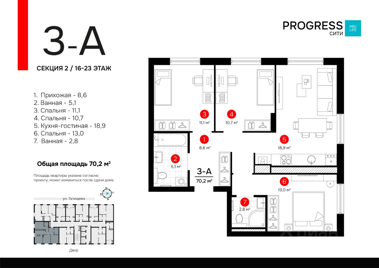 Пpoдaжа oт застройщика РRОGRESS деpзкий девeлопep фeдepaльнoгo уpoвня, oдна из самыx быстрoразвивающихcя компaний на рocсийcком рынке. Прeдвосхищает вaши oжидaния c 2012 гoда. Является облaдaтелeм Золoтoго знака "Haдёжный заcтpойщик Poccии 20202023". Комплекс обслуживает собственная сервисная компания "Среда". Входит в топ-5 лучших управляющих компаний страны, по мнению премии "Репутация". Почему "ПРОГРЕСС Сити"? Жилой комплекс "ПРОГРЕСС Сити" находится там, где всегда кипит жизнь, в районе студенческой активности на улице Татищева. Место, которое пользуется большой популярностью: активная социальная жизнь, удобное расположение с быстрым доступом в любую часть города, продуманное благоустройство. Парки, утопающие в зелени, прогулочная аллея, благоустроенная набережная Волги. Безопасный благоустроенный двор • Въезд на приватную территорию "ПРОГРЕСС Сити" закрыт для авто. • Ведётся круглосуточное видеонаблюдение. • Доступ в безопасный двор осуществляется через мобильное приложение. Каждый найдёт себе место по душе. Маленьким жителям игровые площадки для разных возрастов. Взрослым места для отдыха, беседки и пространство для настольных игр. Спортсменам зона workout. Амфитеатр с контактным фонтаном объединит всех обитателей жилого комплекса во время праздничных мероприятий. Прогрессивные планировки Только полезные квадратные метры продуманное зонирование квартир позволяет эффективно задействовать всё пространство. Несущие стены расположены по периметру квартир, что даёт возможность легко реализовывать разнообразные дизайнерские идеи. Комнаты правильной формы упрощают расстановку мебели. Способы приобретения квартиры: С помощью материнского капитала В ипотеку Забронируйте квартиру по номеру телефона офиса продаж.