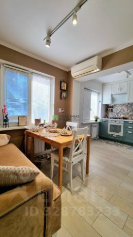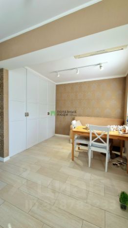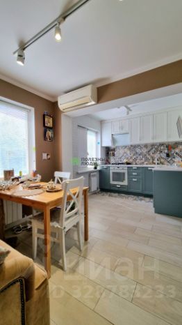 Стильная кухня с мраморной столешницей, встроенная система очищения и фильтрации воды. Кухня совмещена с комнатной, в итоге просторная столовая с вместительными шкафами для хранения.