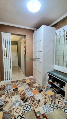 Балкон увеличен, утеплен, со встроенными шкафами.