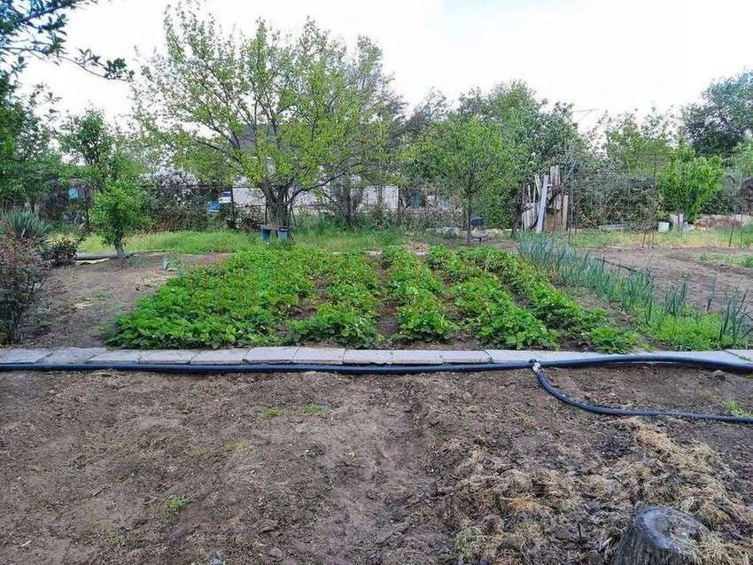 Земля с черноземом. Много плодоносящих сортовых, деревьев, кустов. и цветов.