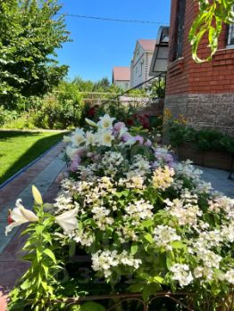 На территории участка расположены: - Беседка с мангальной и коптильной зоной для незабываемых вечеров на свежем воздухе, - Крытая парковка на три автомобиля, - Каркасный бассейн для освежающих купаний в жаркие дни, - Плодовые деревья, приносящие щедрый урожай, и изысканное цветочное оформление, радующее глаз буйством красок.