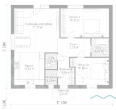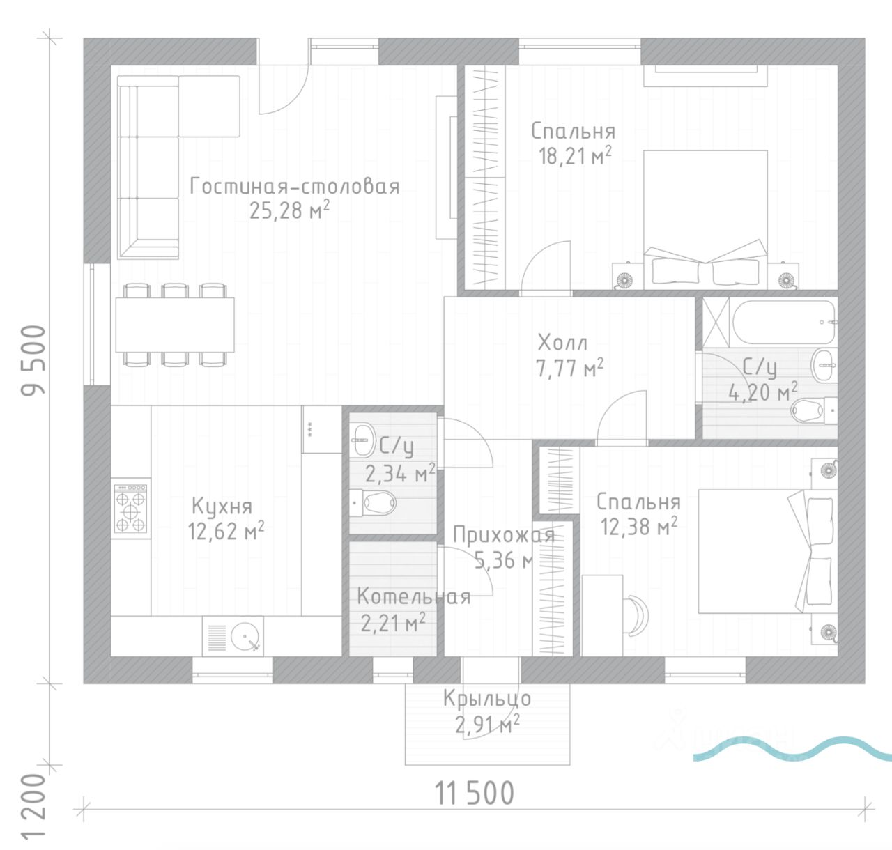 2 комфортные спальни (18.2 м² и 12.3 м²)