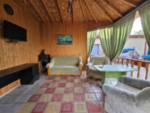 Дом с террасой и баней-сауной- это идеальное место для отдыха и расслабления. Наличие бани-сауны позволяет поддержать состояние здоровья на высоком уровне. Очищение, обновление и расслабление именно то состояние, которое наступает после посещения бани-сауны. С учётом бассейна - это полноценный процесс закаливания организма. Терраса - идеальное место для отдыха, приёма пищи на свежем воздухе, удобное место для пикника, барбекю или семейных вечеринок на открытом воздухе. Это также прекрасное место для чтения книг или проведения времени с близкими людьми. Это дом с полноценным комфортом, который позволяет насладиться роскошным и комфортным отдыхом в уютной атмосфере для проживания и релаксации.