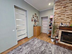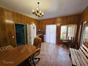 Дом представлен одним этажом, планировка включает в себя холл c камином, оборудованную кухню, совмещённый санузел, 3 жилые комнаты, подсобную-кладовую. Имеется подвальное помещение. Все помещения в доме с мебелью , просторные, светлые, выполнен современный и качественный ремонт, установлены сплит-системы. На ухоженной территории: 2 машино места, терраса с мебелью, мангальная зона, баня-сауна-бассейн, зона для отдыха и хозблок. Хорошие соседи.