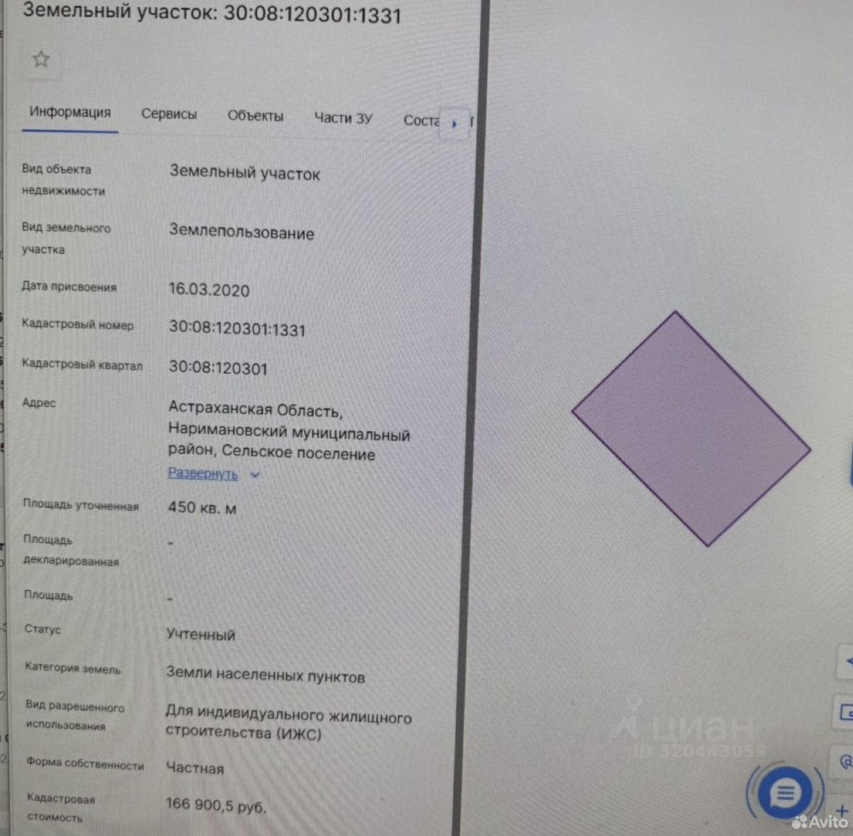 Кадастровый номер участка 30:08:120301:*** указал продавец