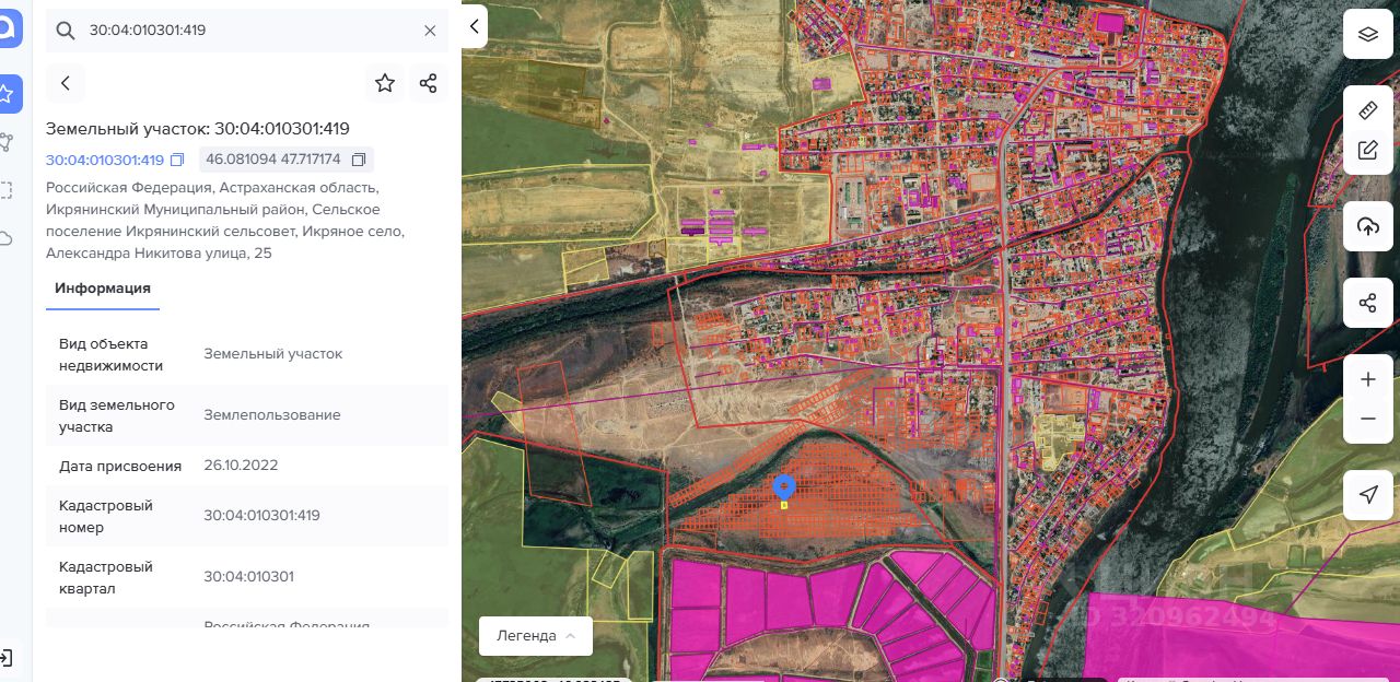 продаю земельный участок ИЖС. Кадастровый номер 30:04:010301:419 Икрянинский Муниципальный район, Сельское поселение Икрянинский сельсовет, Икряное село, Александра Никитова улица, 25