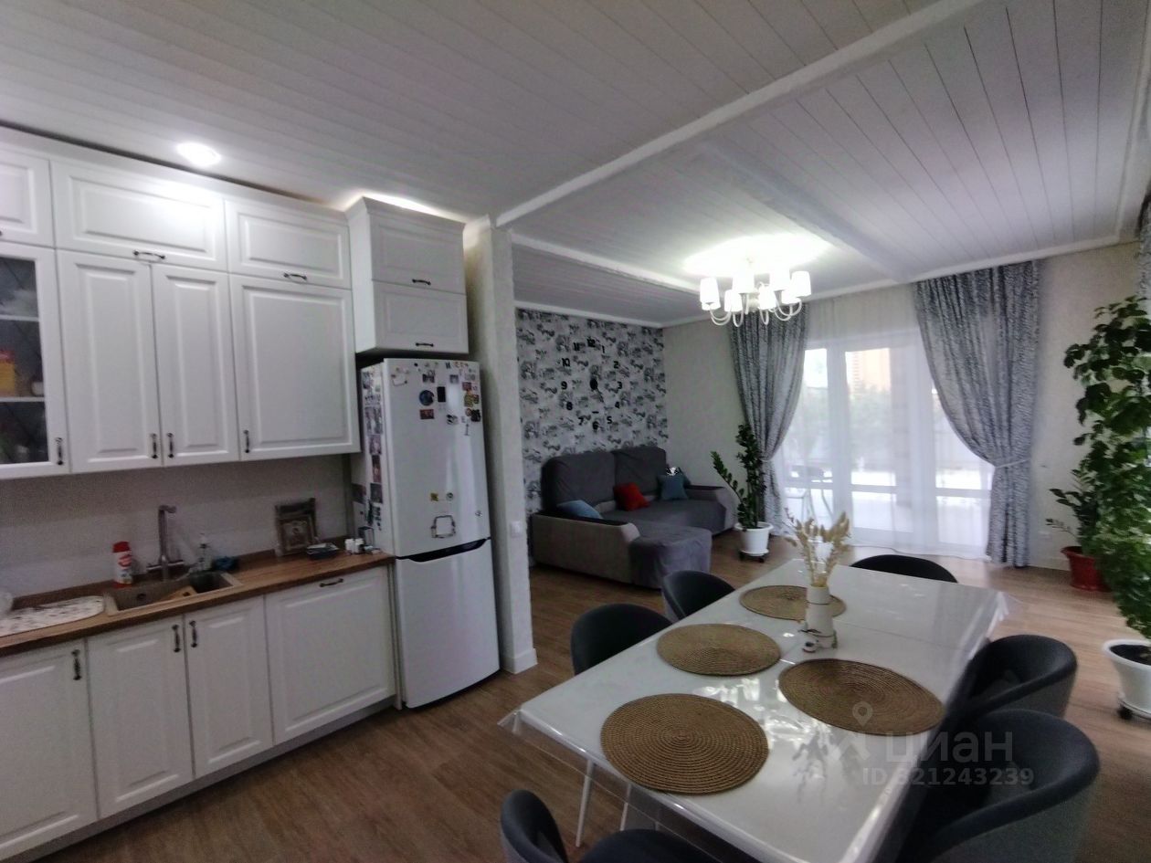 На первом этаже расположена просторная кухня- гостиная, с большими витражными окнами, под каждым из которых установлен конвектор для обогрева, с выходом на террасу, где можно прекрасно проводить время с друзьями, отмечая праздники, или просто отдыхать от повседневной суеты.Также на первом этаже расположена гостевая комната с вместительным шкафом купе большой совмещённый санузел.