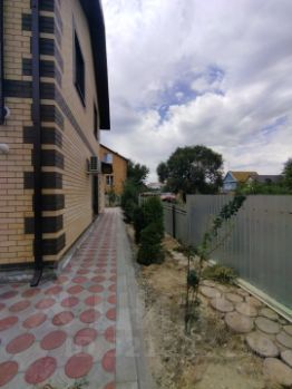 Въезд во двор оборудован воротами с электро приводом. Прилегающая к дому территория выложена тротуарной плиткой. По периметру двора высажены фруктовые деревья, ёлки , туи , кустарники, цветы.