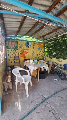 Во дворе находится хорошая кирпичная баня на дровах ( с крыльцом , предбанником , внутри выложена плиткой). Туалет уличный. Так же на территории участка есть небольшая летняя беседка- навес для посиделок на открытом воздухе. По всему участку раскинут небольшой сад с различными насаждениями. Во фронтальной части дома небольшой палисадник с цветами. В передней части двора расположен основательный навес с железными вьездными воротами. В огороде имеется колодец с водой , очень удобно для полива и хоз. нужд. За территорией забора со стороны улицы, возле дома , находится сливная яма (септик). Столб электричества поменян, новый.