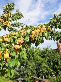 На участке посажены и плодоносят фруктвые деревья и кустарники: абрикосы, черешни, вишни, яблони, груши, сливы, грецкие орехи и орхи фундук; крыжовник, малина, жимолость, ежевика, виноград.