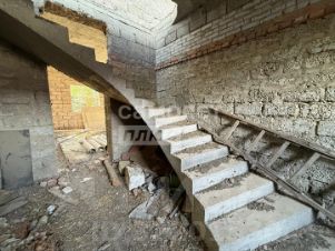 На участке построен 3-х этажный коттедж 400 кв.м. Накрыта крыша. Сделана на заказ лестница.