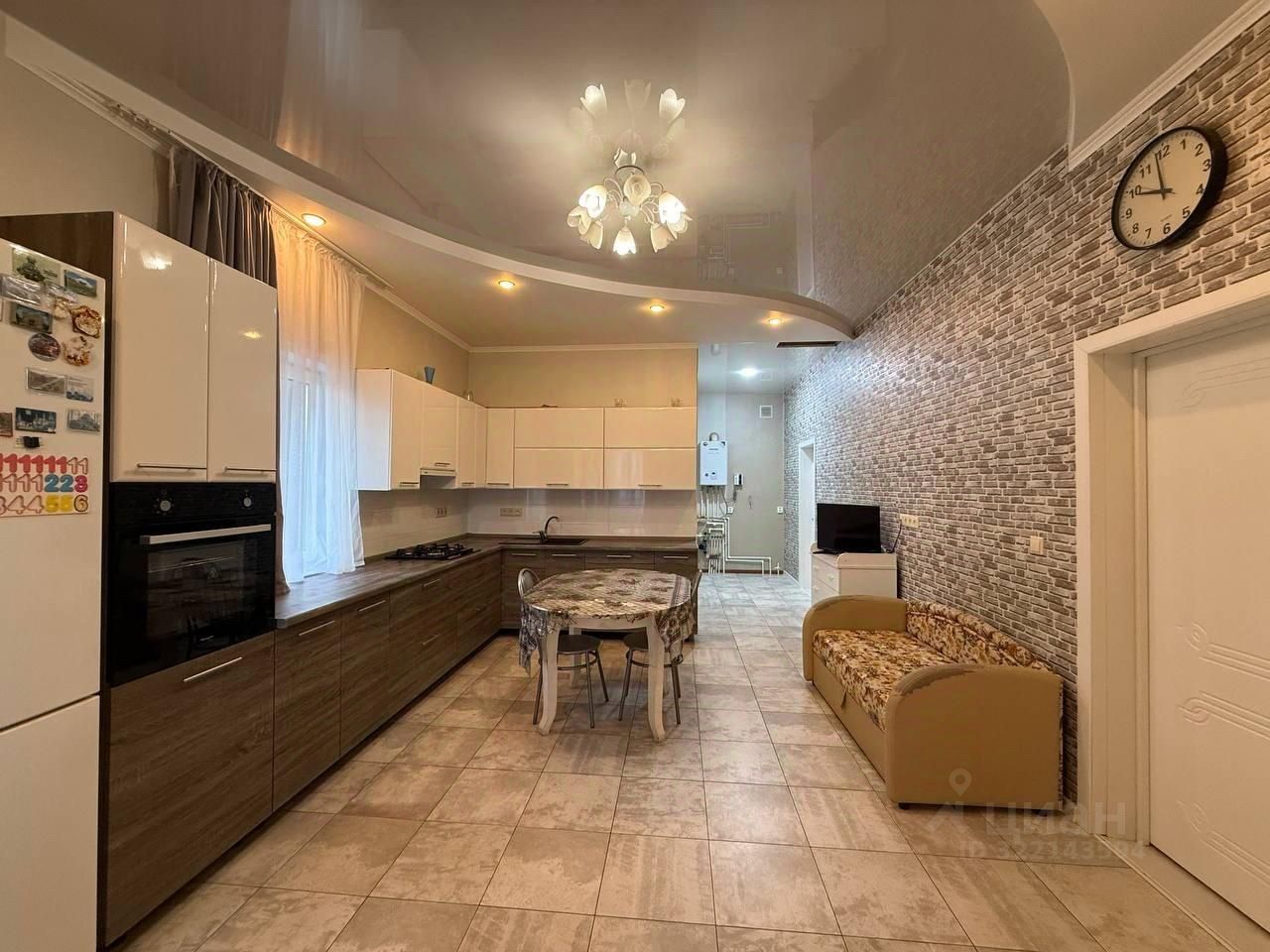 В комнатах на полу ламинат, в ванной комнате и кухне гостиной плитка. Потолок натяжной.