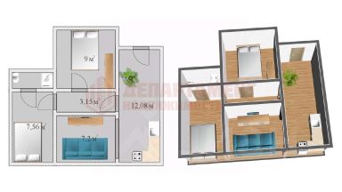 Все комнаты изолированы зал 18кв.м и две спальни по 9 кв.м. санузел 5 кв.м, кухня 5 кв.м прихожая 5 кв.м.