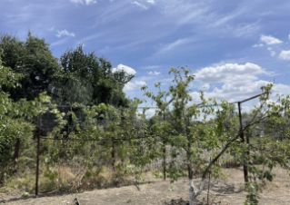 На участке плодовые деревья абрикос, груша, орех ,вишня, персик, слива, смородина, боярышник, калина, алыча, яблоня.