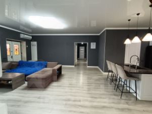 Кухня-гостиная с двумя просторными зонами, три изолированные спальни.
