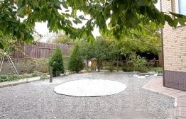 Двор 8 соток, ухоженный. Беседка, мангал, качели. Хвойные деревья, кустарники, плодовые деревья. Двор в плитке, сделаны дорожки.