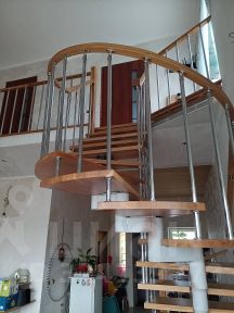 2. Этаж - прихожая, гостинная, спальня, санузел с душевой кабиной. С гостинной идет лестница на внутренний балкон, с которого вход в две мансардные комнаты - спальни.