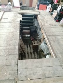 Есть погребок, для особо запасливых, под разный провиант и всякое прочие и разное.