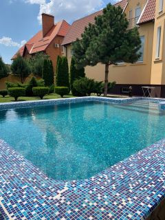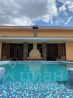 Приусадебная территория благоустроена: выполнен профессиональный ландшафтный дизайн, установлены декоративные кустарники и деревья, садовые тропинки покрыты качественной керамогранитной плиткой. Во дворе расположен современный открытый бассейн с системой фильтрации воды, подогревом и подсветкой.