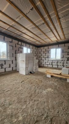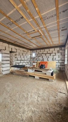 Стены газоблок Волгоградский М 500. (каждый третий ряд газоблока проложен сейсмопояс из арматуры). Дом поставлен на кадастр , все узаконено ( на данный момент внутри свободная планировка, можно комнаты распланировать согласно своему запросу, но опираясь на техплан). Мокрые точки все выведены, коммуникационные трубы 110 диаметра.