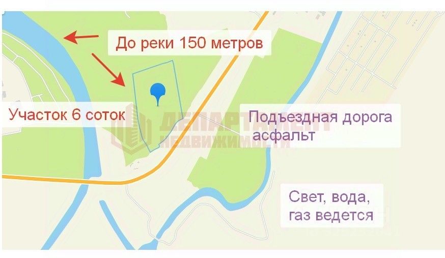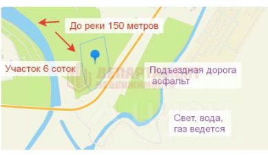 На участке есть поливная вода, ведется газ. В 400 метрах от дороги находится средняя школа.