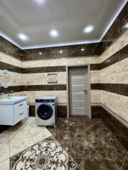 При ремонте дома использовались современные, качественные материалы. На полах ламинат и керамическая плитка. На стенах износостойкие обои. Окна - пластиковые. Потолки - натяжные.