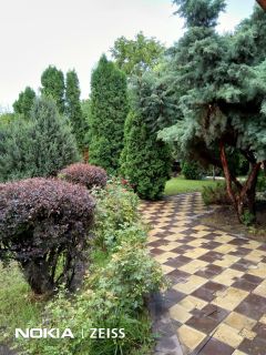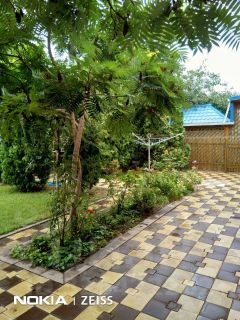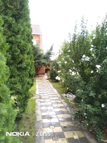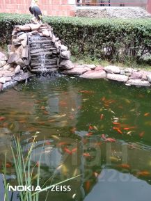 Видовой пруд с фонтанчиком и декоративными японскими карпами кои (кои), глубиной 1,8 м и диаметром 4,5 м., бассейн размером 7 х 3 м, игровая площадка размером 10 х 11 м, спортивная площадка, гостевая беседка из натурального дерева с мангалом и тандыром, кирпичный гараж для парковки 2х авто.