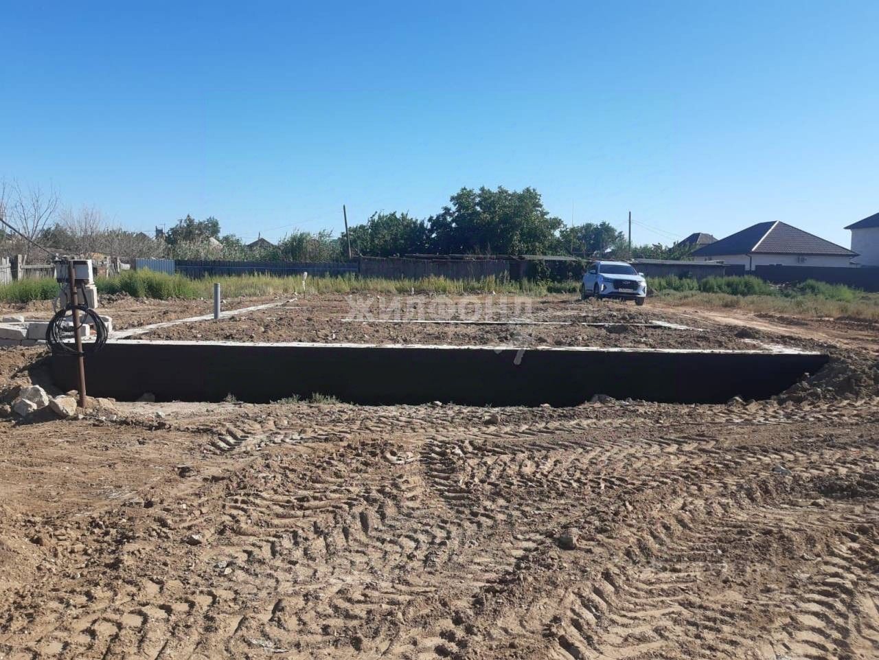 Площадь участка составляет 6 сот., фундамент 15х10м ,СВЕТ,ВОДА - ПОДКЛЮЧЕНЫ, газ вдоль забора, завезена земля, так же на территории стоит металлический гараж для хранения инвентаря.