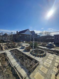 Земельный участок 4,6сот. назначение ИЖС. По периметру забор из профнастила с воротами для вьезда автомобиля. В теплое время года двор облагораживается , так как много зеленых насаждений, в саду множество розовых кустарников. Имеется так же летние туалет и душ (бак для воды на крыше) из дерева, а так же небольшой сарайчик для хранения хоз. инвентаря.