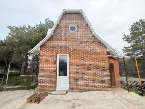 • Баня в готическом стиле из клинкерного кирпича с кровлей из нержавеющей стали, с купелью, котлом и зоной отдыха — требуется лишь отделка