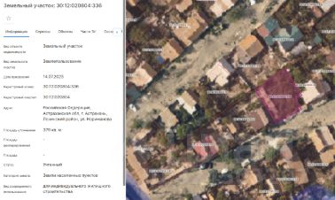 Земельный участок площадью 379 кв.м., расположенный по адресу: Российская Федерация, Астраханская обл, г. Астрахань, Ленинский район, ул. Нариманова с кадастровым номером 30:12:020804:336 с видом разрешенного использования - для...