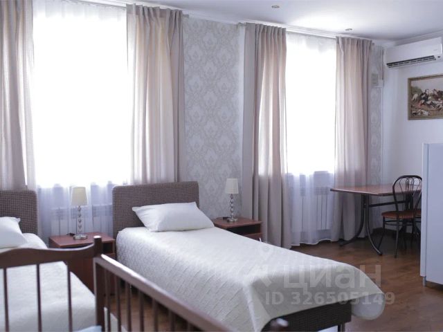 Спальня: две односпальные кровати, стол со стульями, комод, тумбочки, полочки, кондиционер, телевизор со спутниковым ТВ.