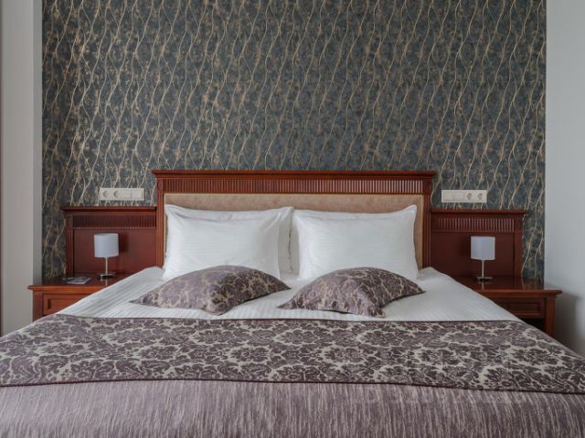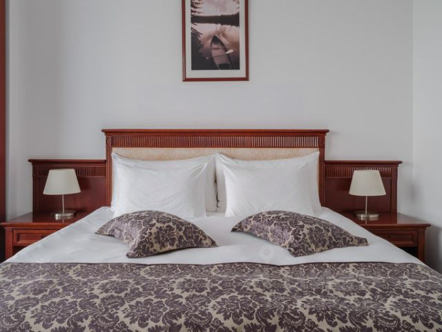 В номере: двуспальная кровать, телевизор, интернет, ЖК-телевизор, посуда, холодильник, мини-бар, чай, кофе, бра, вешалка, светильник, набор постельного белья, мягкая гипоаллергенная подушка из "лебяжьего" пуха, теплое одеяло из "лебяжьего" пуха, натуральное постельное бельё из 100% хлопка, щетка для одежды/обуви, подставка под чемодан, москитная сетка, стулья, шкаф, диван, прикроватные тумбочки, шкаф-купе, кресло, зеркало, тумбочка, журнальный столик, сейф, телефон, сплит-система, письменный стол, набор полотенец, индивидуальные светильники, индивидуальные розетки. В ванной комнате: туалет, раковина, душ, душевая кабина, халат, тапочки, средства личной гигиены, фен, зеркало, набор полотенец.